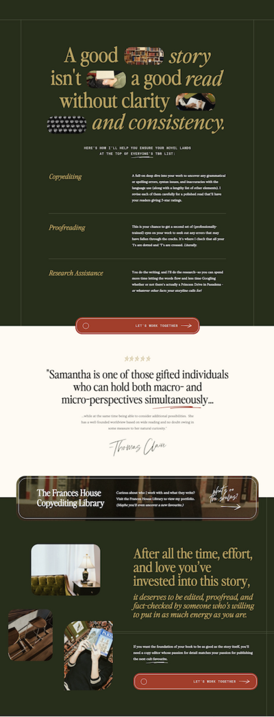 I only work with one client at a time, so I can ensure that I'm always able to dedicate ample time to work on your copywriting project.